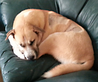 It started with the doctor’s order to keep him quiet and confined. Yeah, right. I put him in the big bathroom near the commercial kitchen (handicap accessible). It has a tile floor so I could hear him pacing and turning, then scratching at the door. I settled for letting him sleep on my new-to-me leather couch in the front room and in my bedroom at night. Not even that kept him quiet. By the end of the first week, I’d given up on keeping him inside during the day, and was instead allowing him to sleep on HIS blanket outside on the porch. He was actually quieter there because he and Bear could be together.