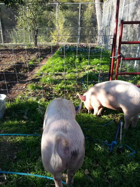 Well okay, not completely happenstance. It’s the pigs/gilts/hogs or whatever they’re called. I know porcine creatures the age of my two girls are rightly called gilts or hogs, but let’s face it, when I want them, I shout, “Hey, piggies!” This starts up the squeals and grunts and they come running at top speed, which, I’ll mention, is fairly impressive.