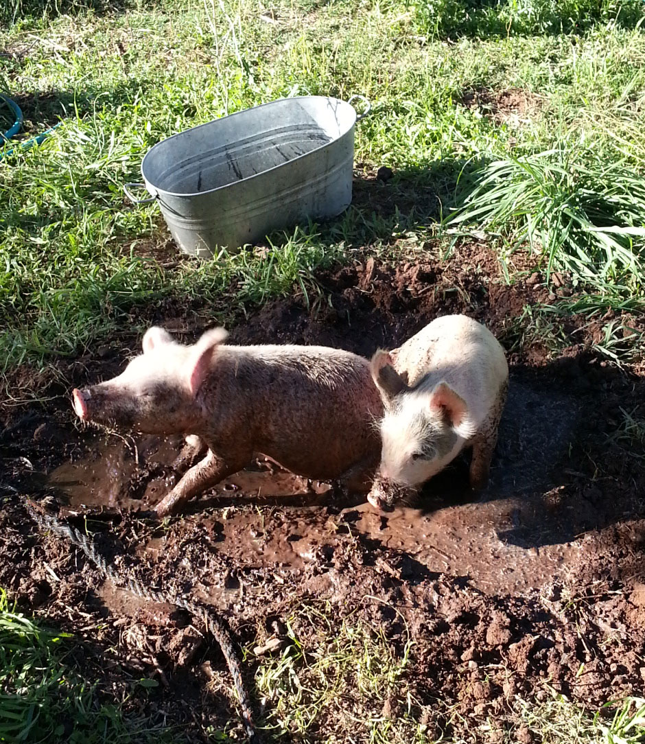 That it doesn’t matter how many tubs of water you give them, they’ll get into all of them for a quick dip, then roll in the mud they made after their first dip, only to go back and deposit said mud into their drinking water.