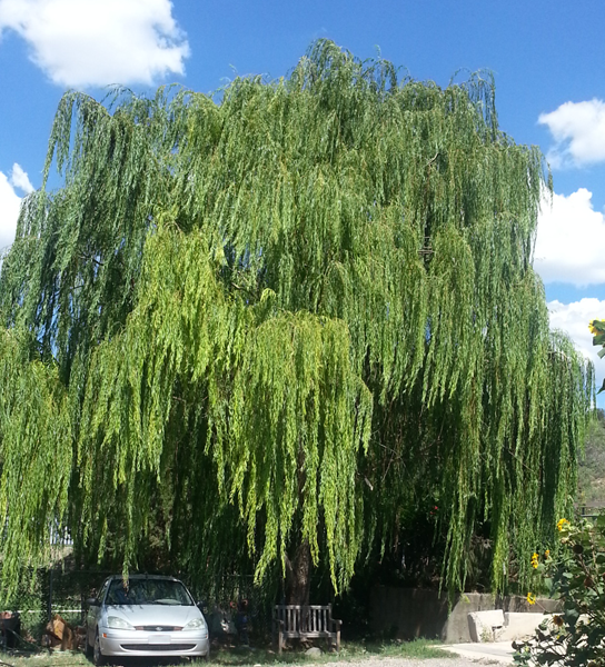 To my surprise, I found the two of them under the huge willow tree that sits at the upper corner of my property, right on the fence line, or more to the point, right where Page Springs enters my property. That’s why it’s so big. It has a constant source of water. It is a beautiful tree, that is, as long as you don’t mind walking through its trailing branches which are often home to some odd looking spiders…white ones. Shudder. I make it a point to give it “haircuts” every so often so I don’t feel like I’m hacking my way through the jungle to reach the gate that lets me visit my neighbors.