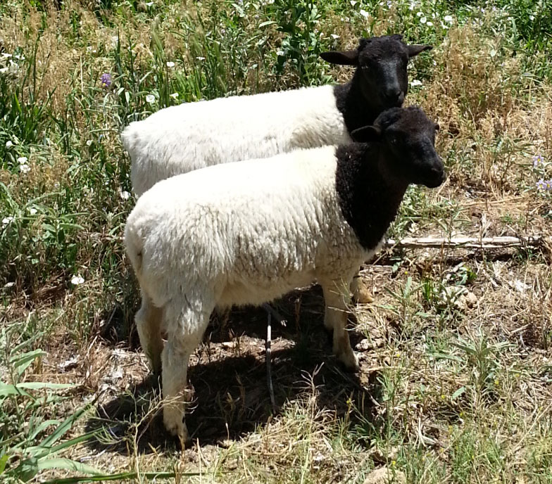 Then this morning, the urge couldn’t be resisted a moment longer. I got into the car and drove to Mayer where I bought myself three Dorper sheep. Tobey and Tiny are both 3 months old, born in February. At 20 pounds each, they came home in the back of my little Focus in a dog crate, baaing the whole way. Tobey definitely has a boy voice while Tiny’s voice is all sweet little girl. Little Cinco (born on Cinco de Mayo), the ram who will hopefully make more sheep via Tiny, will stay with his mom until July when he’s weaned. This time the surprise was on the dogs. They aren’t quite sure what those little creatures locked in the orchard garden are. Just in case Moosie gets any ideas (he’s creeping over to the orchard fence as I type this to have yet another look at them), I spent an hour telling him that these creatures are MINE! I’m hoping he’ll do with them what he did with the calves, figure they’re some sort of odd-looking dog, then adopt them as his own. It’s nice to see the little guys finally moving around the overgrown orchard and taste a bit of this and that.