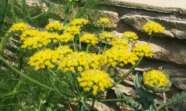 FennelI have tons of fennel growing in the front gardens. Their smell reminds me of the California’s beaches where Anise runs rampant. Okay, not exactly the same scent but close. I keep them going because fennel has a long tap root that brings nutrients up to soil level, but even if they weren’t good for the dirt, I’d keep them. The ferny fronds and clusters of yellow flowers are great in a posy. Of course when it comes to fragrance, there’s nothing like a Magnolia’s massive white, waxy blossoms. The tree is just beyond the western edge of my porch and the strong scent of citrus wafts from it every time the breeze blows. That the tree exists at all where it is is a miracle in my book and of course I can’t reach the blooms to cut one, so I’m content to just breathe it in.