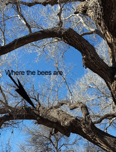 Second, the bees have awakened out of the massive hive at the top of the even more massive cottonwood at the back of my property. The “oldster”–what the freebie Dutch newspaper I got while I lived in Holland called the ancient local trees in their weekly column; go figure, a column about local trees–is so big that it would take four people with arms outstretched to encircle it. The bees found their way into a very large dying branch near the middle of the canopy, where I’m sure they’d been for more than 20 years when we moved in. The branch broke four years ago, taking a chunk of the hive with it when it fell. The beekeeper who came to deal with the bees said it was the third largest hive he’d seen in all his years dealing with Apis Mellifera. He estimated at least 60,000 bees and was pretty certain they weren’t Africanized, thank goodness. Once the bees were destroyed (that made me sad but was unavoidable given the situation and hive size), we burnt the log that had been their home. The smell of hot honey filled the house for days after that. It was another week before I noticed that there were still plenty of bees coming and going out of the ragged hole in the broken branch. Suffice it to say that I have no shortage of pollinators here.