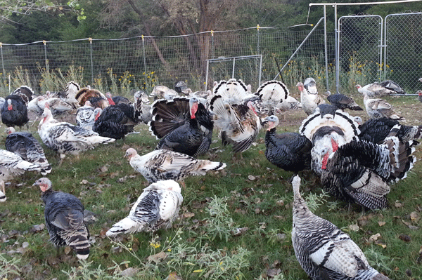 On a slightly less stressful note, or maybe not, my tom turkeys are now fully in their “tom” phase. Lordy, are they annoying! They’re hooligans who roam the property in a pack. Yes, I meant to use that word. They’re like a bunch of teen-aged boys, arguing with each other, bopping each other on the heads just to see if they can, and showing off to every available female. Their daddy, my real Tom, has been dancing up a storm to remind them that he’s still boss. It’s a good thing they still respect him. More than a few are substantially bigger than he is now. Thanks heavens it’s almost Thanksgiving and they’ll soon be gone. Like last year, I’ll keep Tom and 20 hens. The rest are Thanksgiving dinners or ground turkey and bone broth.