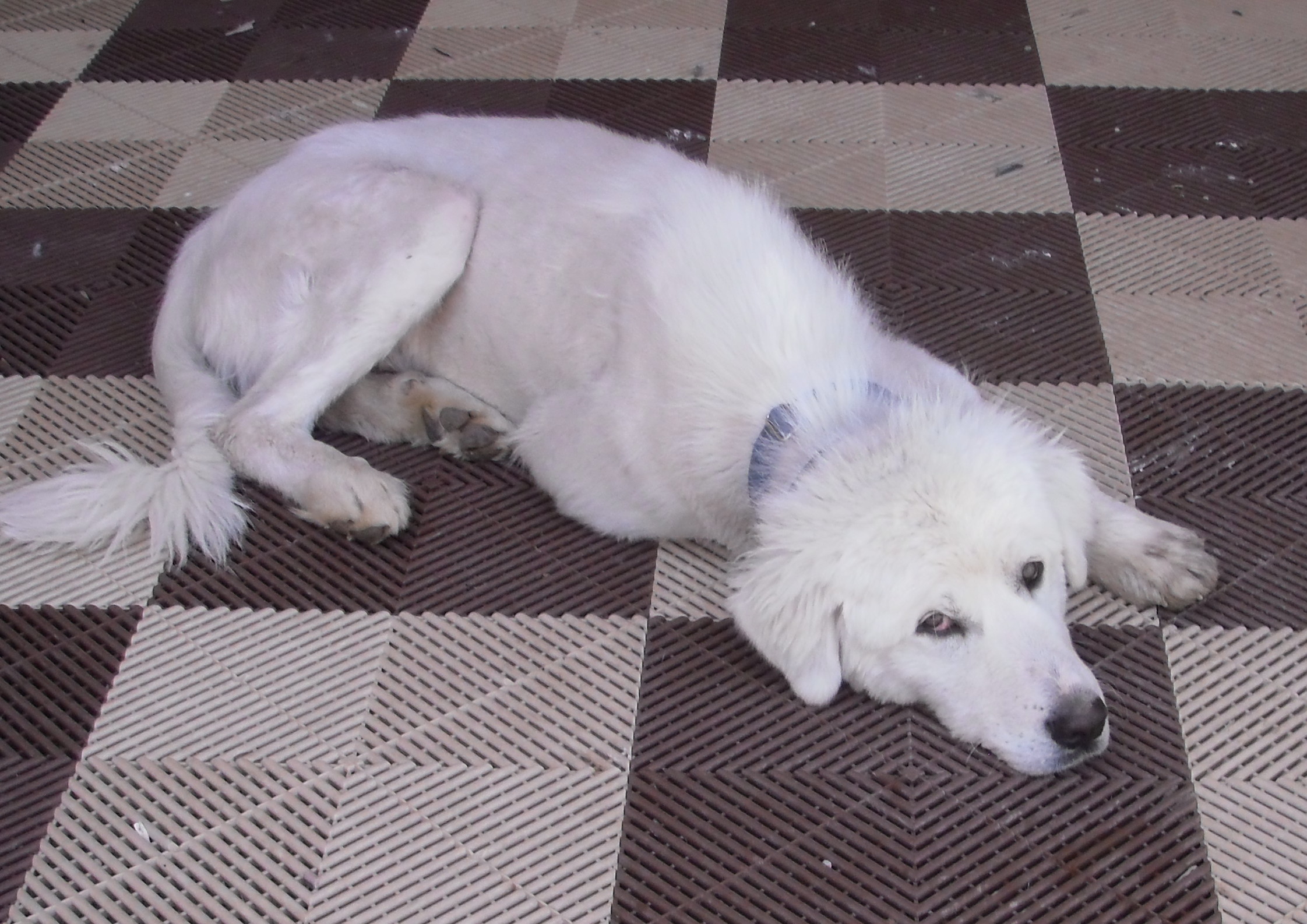 Like Moosie, Bear is a rescue. The powers-that-be believe he’s a Hungarian Kuvasz, the breed from which the Great Pyrenees descend. The description fits: “Quick to grow, slow to mature. Almost impervious to inclement weather.” Yep, that’s Bear.