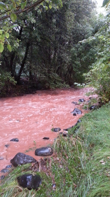 As with everything, there are consequences to encouraging the rain out here on the farm, and it mostly has to do with the creek. A good rain in Flagstaff or Sedona can significantly raise the water level. Last spring when the “great flood” hit, the water came well up onto what the county calls “the flood fringe”, almost pulling down my perimeter fence. That was water ten feet deep and moving at an incredible speed. In fact, it was moving so fast and was so high it hardly looked like it was moving at all. It was only as I watched it carry off a 20 foot length of a 3 foot diameter cottonwood trunk (bye-bye oyster mushrooms!) that had been laying next to my fence when I moved in that I realized just how powerful the creek had become. Needless to say, I was suddenly wondering if I would have to bring the cows to the upper terrace where the house is–6 feet out of the flood fringe or so I’m told–but how the heck was I going to herd the turkeys up here?