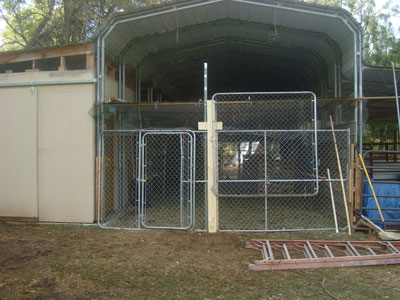 It was the turkey coop wall this time. As I mentioned in my previous post, my coop is less than stellar in the first place. Although it stands in the center of my open pole barn. One side is up against the corrugated metal barn siding, but the other three are 6 foot chain link panels bolted together. There’s only chicken wire for roofing.
