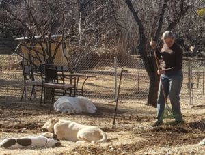 I had already written my blog post last week when at 2 PM on Monday Tiny disappeared from her little flock. Thinking that the day was upon us, I’d purposefully put the girls in my neighbor’s upper pasture. It’s a small space and I can see most of it from the house. All the better to keep an eye on my now middle-aged girl. The moment I realized I couldn’t see her from the porch any more, I hurried through the gate and walked the length of the area. One side of the pasture is bordered by a steep hillside that leads down to the Mason Ditch. That area is covered in wild honeysuckle and paradise trees. (For those of you who aren’t from this area, paradise trees were imported from China by the miners in Jerome; they are stinky, allelopathic, and invasive.) If Tiny was down there, I was pretty sure I was going to hurt myself getting to her, or at least end up swimming in the ditch.