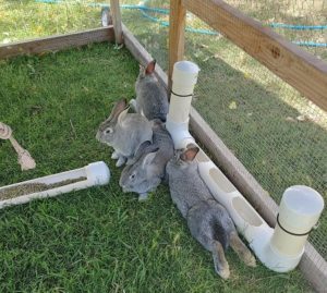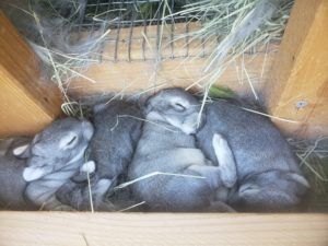 Within moments all four teenagers were in the chicken tractor. They examined their new enclosure with real interest and a moment later I saw my first rabbit binky. I’ll admit I didn’t know I was watching a rabbit binky or that there was even such a thing as a rabbit binky. A binky–when performed by a member of the cuniculus family– is a circling, hopping, joyful movement. Even though I didn’t know what I was watching, I did recognize what it meant, that the rabbit was happy and comfortable.