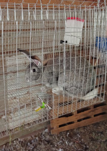 I was okay with that. I knew I’d be happy if I 1) managed to arrange it so the girls pregnant–exactly how do you know if a rabbit is in heat?–and 2) that the new moms come safely through kindling. If and when that happened, I’d have a month to build a rabbit tractor, so I can keep these new babies out on pasture until dog food day comes.