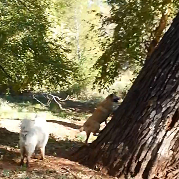 This photo is from October of 2017 when he and Bear had treed a bobcat. I watched him go almost six feet up that trunk on sheer willpower…and took him to the vet the next day because he had wrenched his shoulder. That’s what Christina found. Moosie had once again overworked his left shoulder, no doubt trying to climb a tree after some varmint.