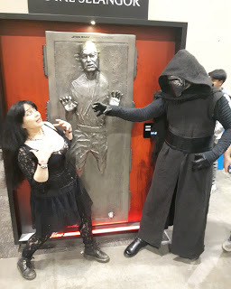 Han Solo in carbonite was right across from us the whole time. As is a little silver Kylo Ren figure for $299 plus tax. The Han Solo means no one sees our booth because everyone is taking pictures in front of it. We do what we can!