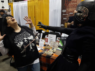 Brad Middleton and Alessia Giacomo are holding down the fort at the Horror Writers Association Booth for the morning and afternoon shift. Of course, I totally forgot to take pictures of other people actually at the booth, like Tonya Liburd, Stephanie Bedwell-Grime and Andrew Robertson. Most of us are back on Sunday so come on by! I was side-tracked by my celebrity crushes and Kylo Rens.