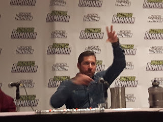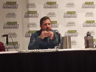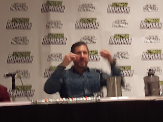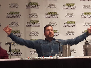 I've babbled on before about Darth Maul. How excited I had been for Darth Maul, how furious I was when he was killed so quickly and that horrorshow Jar Jar jarred me into oblivion and I actually hated Star Wars for a while and almost didn't see The Force Awakens. Yes, I'm aware Darth Maul has a life in spinoff books and TV shows, but he sure didn't in the major movies. At any rate, decades later, I'm willing to forgive that movie since I don't remember much about it anymore. I wore one of my Darth Maul watches and a Kylo Ren shirt. Ray Park's work is great. He's in other movies as well. His talk was really good. He told stories about several movies. Some of the audience questions lended themselves to fun stories.