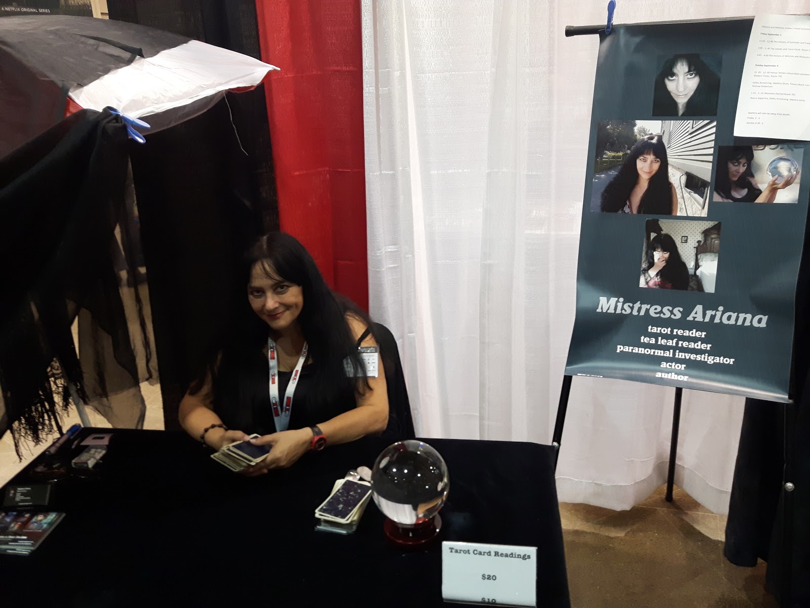 Sephera will have Booth 5425 where she'll be reading tarot cards in the horror section. Sephera who is also known as Mistress Ariana will be giving three lectures and is on a couple of panels.