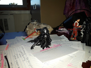 Sometimes, ahem, most of the time, camera phones take sucky pictures. This is actually a tall and very well put together Kylo Ren. He was a real sweetie under the mask as well. I would have talked longer to him but my parking was expiring and I had to get all the Horror Writers Association booth crap to the car before it turned over another ten bucks. I didn't even show him my Kylo Ren watch or the little Kylo I keep in my purse.