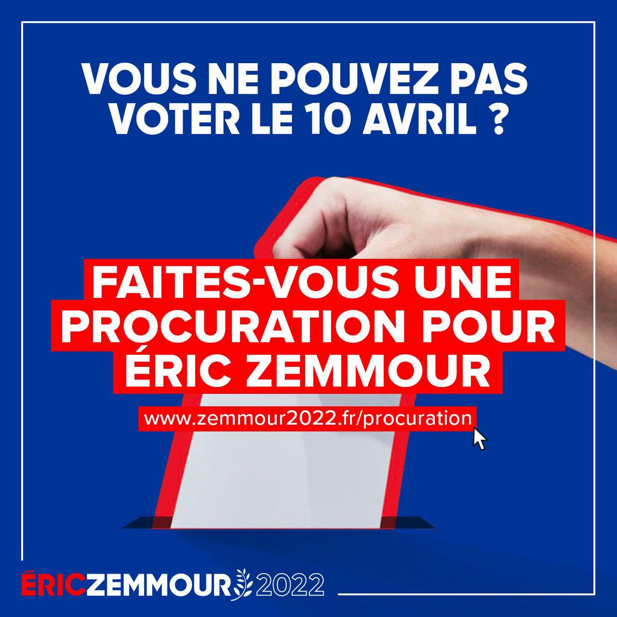 Si vous ne pouvez pas aller voter, faites-vous une procuration : zemmour2022.fr/procuration