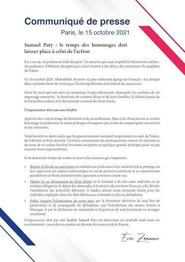 RT by @ZemmourEric: Il y a un an, Samuel Paty, professeur d'Histoire et de Géographie, était décapité. Le temps de l'émotion doit faire place à celui de l’action.