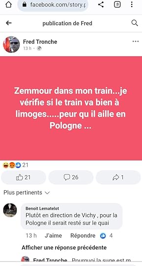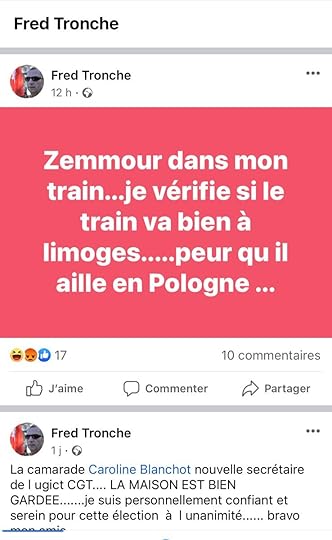Votre représentant a hurlé à plusieurs reprises sur @ZemmourEric en lançant notamment « Tu prends le train pour Auschwitz ? ». Nous n'oublions pas non plus que votre drapeau @lacgtcommunique flottait parmi les sauvages qui ont attaqué l'hôtel de sa dédicace à Brest. Si vous cherchez le fascisme, regardez-vous dans une glace.