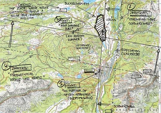 Bijlage 4, ImpromptuAls men uw boek leest heeft het er alle schijn van dat de code inderdaad inderhaast en onvoorbereid is opgesteld. Wellicht was deze versleutelingstechniek goed bekend bij Duitse officieren. Niets wijst er ook op dat er van te voren afgesproken was welke coderingstechniek men zou gebruiken. Dat de coderingstechniek als het ware tot de standaardkennis der officieren behoorde kan ook worden afgeleid uit het gegeven dat Bormann tegen Otto gezegd heeft dat Schwarz direct zou begrijpen waarover het ging.Maar er is nog iets: De pastoorsbrief is opgemaakt een paar dagen voordat Adolf Hitler uit het leven is gestapt en we weten ondertussen dat Adolf Hitler in Gerold bij Mittenwald wou gaan wonen. [***] Er is bovendien een periode geweest tijdens de Tweede Wereldoorlog waarin Hitler tevergeefs geprobeerd heeft om de geallieerden aan zijn kant te krijgen om samen met hen het communisme te bestrijden. Adolf Hitler zal dus voor zichzelf wel een uitweg uitgestippeld hebben en het is dus niet onwaarschijnlijk dat -als het om de persoonlijke diamanten van Hitler ging- die schat initieel was verstopt om er de oude dag van Hitler zelf mee te financieren. Ik ken immers geen enkele dictator uit de geschiedenis die vergeten was om aan zichzelf te denken, waarom zou dat bij Hitler anders zijn geweest? De schat lag (wellicht) op Buckelwiesen en dus op slechts een paar kilometer van de plaats waar Hitler zijn oude dag dacht door te brengen indien hij voor zichzelf een uitweg kon onderhandelen, het schilderachtige Gerold.Het is dus best mogelijk dat Hitler pas te elfder ure, én onder zware stress, heeft beslist dat zijn pensioenfondsmocht worden gebruikt voor Werwolf. Mocht de beslissing om die diamanten en het goud na de oorlog te gebruiken tegen de vermeende geallieerde bezetters eerder zijn genomen, dan zou men wel de tijd genomen hebben om een veel ingewikkeldere code te gebruiken dan deze padvindersversleuteling.