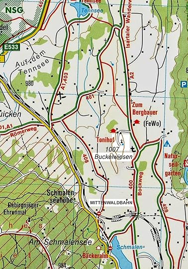 (Bekijk hieronder een afdruk van een stukje uit een Garmin topografische kaart van Zuid-Duitsland. ‘Am kalten Wasser’ ligt in de linker bovenhoek)