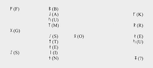 Als men nu de runentekens in de pastoorsbrief van boven naar onderen leest en hun associaties met de Arabische letters indachtig is, dan krijgt men volgend beeld: [*]