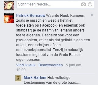Het was deze Huub Kampen die zich vrij recent op Facebook aandiende als Mark Harlem. Op Facebook verdorie. Net zoals Wikipedia een vrijplaats waar iedereen ongestraft een hoop onzin kan en mag verkondigen, zich uitgeven voor iemand anders, van geboortejaar veranderen, noem maar op. Toen de nonsens van Huub Harlem de spuigaten begon uit te lopen, heb ik hem er vriendelijk maar kordaat op gewezen dat hij tamelijk illegaal bezig was. Daarna ging Ysa er zich ook mee bemoeien: Waarin Karl Hammer uit de kast lijkt te komen als fan van Ysa Pastora en Mark Harlem zich out als Karel Martel, icoon van extreemrechts...