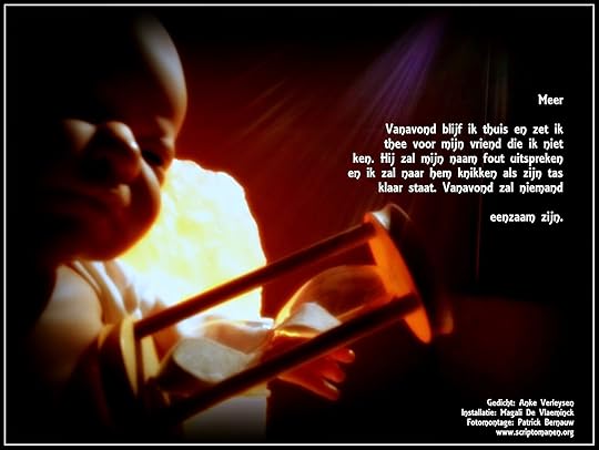 In het voorjaar van 2015 verschijnt bij vzw de Scriptomanen de debuutbundel van Anke Verleysen,met installaties van Magali De Vlaeminck,fotografisch bewerkt door Patrick Bernauw,zoals dit CHILD IN TIME.