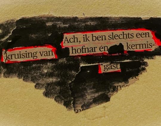 Samen met ( M i ) heb ik in april het Mystiek Actie Front opgestart: een cursus creatief schrijven via de podcast die zich onder meer bezighoudt met blackout poetry, ook bekend als stiftgedichten. We benaderen de techniek als een manier om tot nieuwe inspiraties te komen. Eigenlijk is het als het automatisch schrift van spiritisten & surrealisten, maar dan omgekeerd: je gaat automatisch schrappen en legt zo onvermoede connecties met je persoonlijk en het collectief onbewuste. MAF! staat, kortom, voor creativiteit in een spirituele context, en met de glimlach.