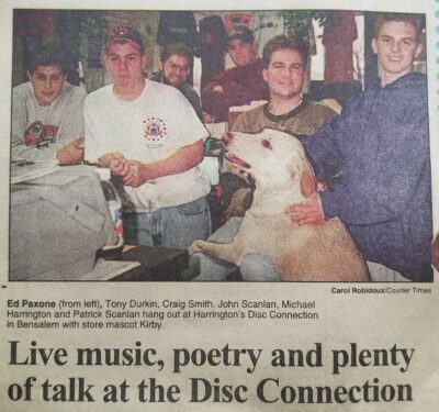 Here’s the first page of an article (courtesy of Mr. Craig Smith) about my old record store Disc/Connection (1994-1999). It’s nice see all the boys again and super-nice to see the late Kirby, who belonged to Christopher & Lisa Kaelin, my friends and partners during the first year and a half or so.