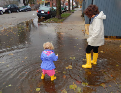 Stormy day (lots of tornados south of Chicago) and both Veva and Loey enjoyed stomping in some puddles in their big yellow boots!