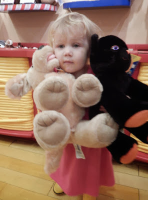 Took her to the Children's Museum for the last half hour until they closed, then got ice cream and finally a visit to Build a Bear, where she was very happy to hug two new "babies" - and also did not fuss about putting them back and not buying anything there!