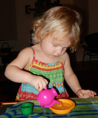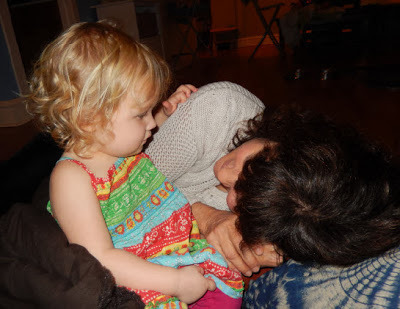 Loey asked (no, to be honest, TOLD) Grandma Veva Silva to lie down on the blanket and got nite-nite with her. So they did that (along with a half dozen of her "babies" - mostly stuffed animals) and then Loey sat up and stared down into Veva's eyes very seriously and after a moment said "You are a baby" and then treated Veva like one of her babies, put her arm on/around Veva's shoulder, patted her. Very funny little girl! (who insists that she is certainly not a "baby", not a "little girl" not a "big girl" but a "big lady"!).