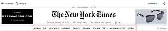 So I found it really striking and downright depressing that none of our major newspapers even include the Environment, Planet, Ecology, Climate Change, etc. as a top-level entry on the banners of their websites. Take a look: