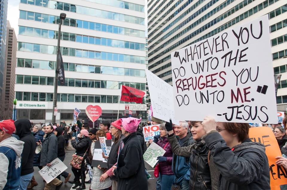 Protest at Thomas Paine Plaza, Philadelphia, 26 January 2017. Photo credit: Ben Deibert.
