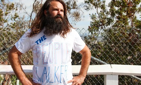 Chuck McCarthy charges per mile to walk with and talk to customers in LA, an example of the growing companionship industry. Photograph: Noah Smith for the Guardian