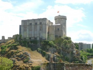 Falaise was one of our Henry's most important strongholds and he was often here. He chose Falaise for his triumphant peace treaty in 1174 with the captive King of Scots, and he and Eleanor held at least one lavish Christmas court here. We do not know where Eleanor was held after she had the bad luck to fall into Henry's hands in November of 1173; Henry kept her location a closely guarded secret. She was most likely confined for a time at Chinon, but it is my belief that she was eventually taken to Falaise. Henry kept his Christmas court at Caen in 1173, and Falaise was just twenty miles to the south, very convenient for a long overdue reckoning with his rebel queen. Moreover, Falaise would have been a safer choice than Chinon, which was too close to Eleanor's own lands, and if she were being held at Falaise, it would have been easy to bring her to Barfleur when she and Henry and his court sailed for England in the summer of 1174.