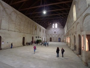 So the palace must have seen some truly fascinating scenes during those years that the Dukes of Aquitaine reigned over Poitiers. We owe the stunningly beautiful great hall to Eleanor. Today it is known as the Palais de Justice, but in Eleanor's time, it was called La Salle des Pas Perdus, the "hall of lost footsteps," for it was huge, one of the largest halls in Europe, 160 feet in length, 55 feet in width. The original beamed ceiling has been replaced, but the splendor remains. Eleanor often held court here and the hall must have resounded with the music of the finest troubadours in Christendom. It was also here that Joan of Arc was subjected to an intense three week interrogation by the Archbishop of Reims in 1429; the churchmen concluded that the king might lawfully receive this "simple shepherd-maiden" for "there was nothing found in her which was not Catholic and reasonable."