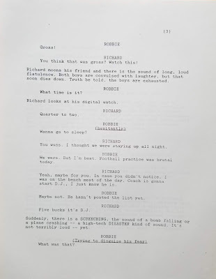 Near the beginning of the screenplay: