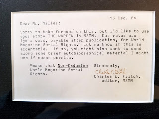 How excited I was! An actual payday for something I had created from pure ether. A penny-and-a-quarter per word, totaling something like $50. Seems like peanuts now, and it was even 33 years ago, but it proved powerfully motivational. And so I kept writing and writing, and not just short stories, but the beginnings of horror novels. More about those later in #33Stories.
