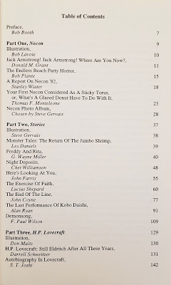 King was an early attendee at NECON, back in the day, as the saying goes, when he was rising fast on the literary scene but not quite the best-selling master he became. I attended several NECONs in the mid and late ‘80s, with writers and artists including Gahan Wilson, Tom Monteleone, Elizabeth Massie, Kathryn Ptacek, Paul F. Olson, Peter Straub, Chet Williamson, Robert McCammon, David Wilson, Courtney Skinner, and the late Charles F. Grant and Les Daniels. Good times down there at Roger Williams University. Lasting friendships made.