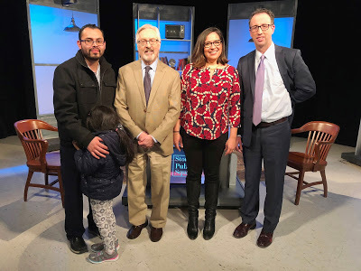 I have been blessed in my decades as a journalist and writer to meet some of the most courageous and noble people who live among us. The Berubes are three of them. We all were honored today at the 29th annual Metcalf Media Awards from Rhode Island for Community and Justice, a wonderful organization dedicated to "fighting bias, bigotry and racism and promoting understanding together." My three-part Providence Journal series on the Berubes, "Saving Rob," about a dysfunctional and sometimes criminally harmful social-service agency, published last summer, won in the Print Daily category. John Kostrzewa edited the series, and our new executive editor, Alan Rosenberg, took time from a busy day to join us. And I was surprised and delighted that my Story in the Public Square partner, Pell Center director Jim Ludes, and Kristine Hendrickson, Associate Vice President for University Relations/Chief Communications Officer at Salve Regina University, came, too.