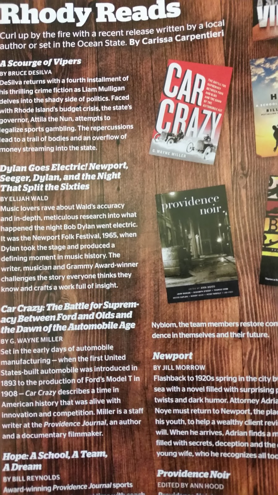 -- Rhode Island Monthly in its January 2016 issue named Car Crazy a "Rhody Read."