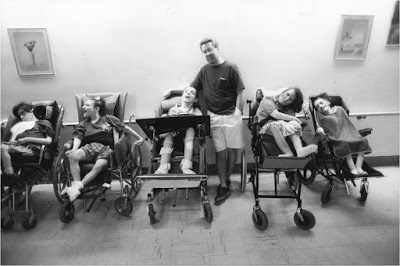 I tell him that I am a reporter. This has an immediate calming effect on him. We agree that I may, after all, bring a chair to the table. Only not that chair. I get another one and finally sit down with the patients. Pat and Evelyn congratulate me. I've done something they've always wanted to do: stand up to this attendant, whom they describe as a bully.