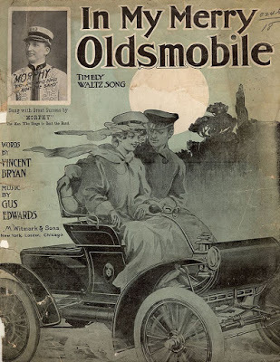 "In My Merry Oldsmobile" was one of the hit songs of 1905, a huge year for the automobile industry -- and a huge year in many of the stories told in CAR CRAZY. That's the year two of these Curved Dash Oldsmobiles raced from Manhattan to Portland, Oregon, one of the adventure I chronicle in the book. The winner took... 45 days.
