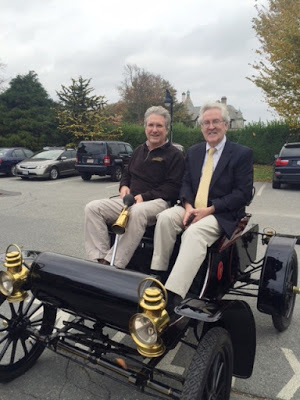 In closing, let me express my gratitude to the people who brought those incredible classic cars parked outside. Ambassador Bill Middendorf and his motor men Mitch Morin and Kyle Santos brought the 1893 Duryea replica and the 1912 Model T Speedster. The Audrain Automobile Museum, right here on Bellevue Avenue – I highly recommend a visit -- brought the 1912 Packard and the 1904 Oldsmobile, the model that crossed from Manhattan to Portland, Oregon, in 1905, one of many adventures I chronicle in Car Crazy. Museum executive director David de Muzio and mechanics Joe Lanuez and Bill Meteraud are in charge of those great cars.