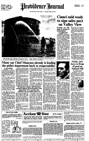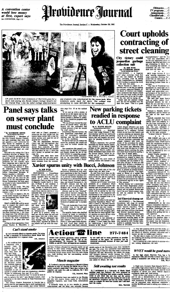 My first two stories, reprinted at the bottom here, were penned during an initiation week in the newsroom at 75 Fountain St., after which I was assigned to the Greenville bureau. I spent a few months there, worked a few shifts at the State House, and then was moved to the Newport bureau. In late 1983, Joel brought me downtown full-time, with responsibility for the state prison system, state child services, and the state behavioral healthcare and developmental/intellectual disabilities systems.
