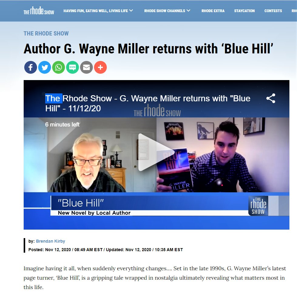 "Imagine having it all, when suddenly everything changes…. Set in the late 1990s, G. Wayne Miller’s latest page turner, ‘Blue Hill’, is a gripping tale wrapped in nostalgia ultimately revealing what matters most in this life.