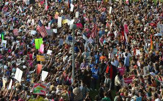 Of course, there are some who say that there’s no need for outreach, that “angry white guys” are enough to carry them to the White House and control of the Senate. I invite those people to compare and contrast a pair of events that happened right here this past week in North Carolina. They are the latest “Moral Monday” protest on the Halifax Mall behind the General Assembly building and the “Thankful Tuesday” counter-demonstration the next evening.According to The News & Observer, the police estimated 2,000 attendees at the Moral Monday protest. Organizers pegged the number at closer to 5,000. The Tuesday protest, on the other hand, drew a mere 200 people, holding signs that said, “Stop Abortion Now,” and “Thank you [Gov. Pat] McCrory.”