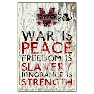 Doublethink was described as "the power of holding two contradictory beliefs in one's mind simultaneously, and accepting both of them ... To tell deliberate lies while genuinely believing in them, to forget any fact that has become inconvenient, and then, when it becomes necessary again, to draw it back from oblivion for just as long as it is needed, to deny the existence of objective reality and all the while to take account of the reality which one denies - all this is indispensably necessary."Well, it certainly has become indispensable to the American right wing. No wonder so many of them go crazy.